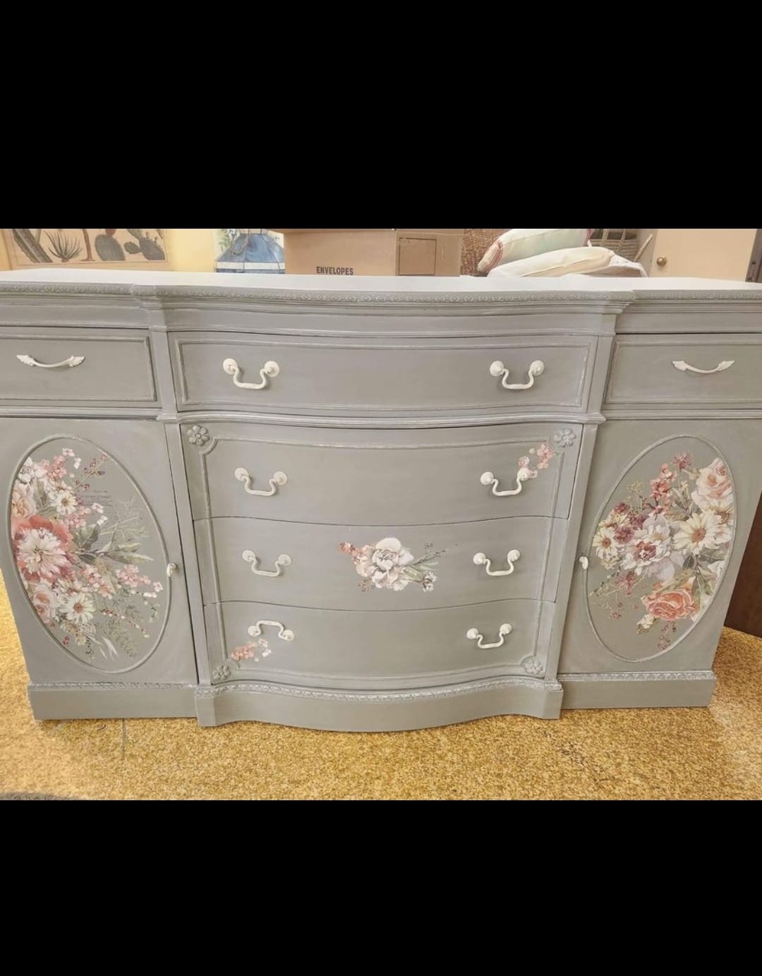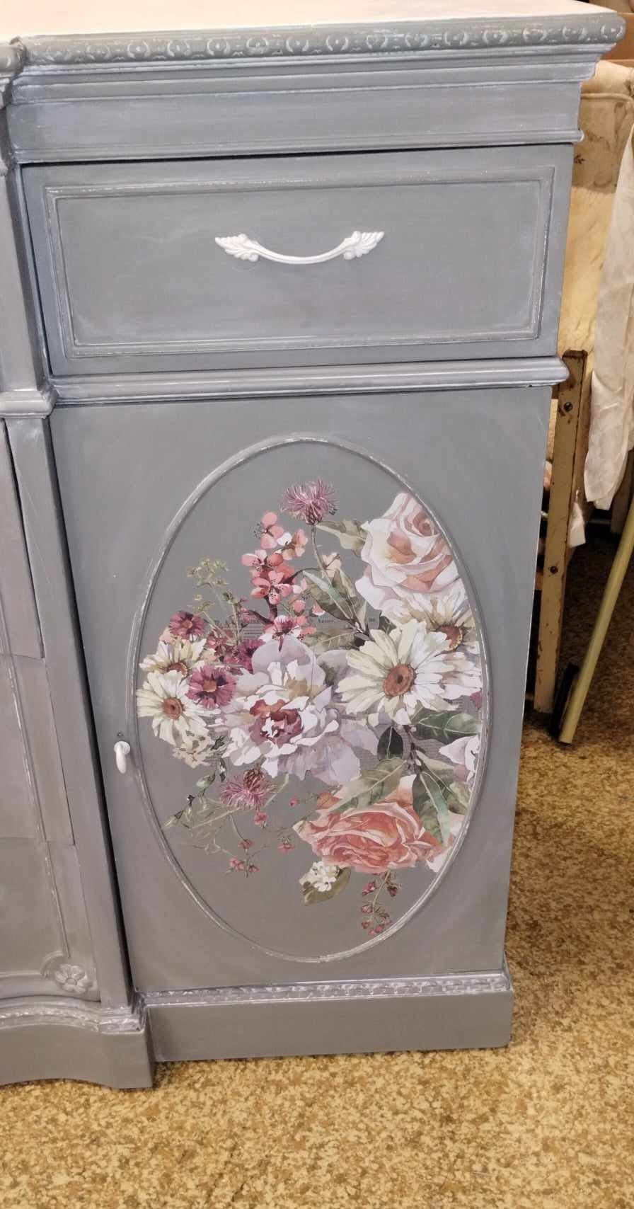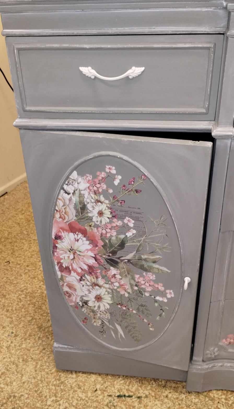 LARGE BUFFET/DRESSER PAINTED AND REFINISHED WITH IOD TRANSFERS